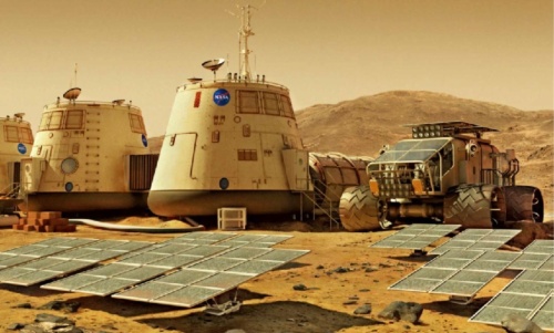 すでに先遣隊によって基地が建設されている。画像を見てみると、太陽電池をメインに居住カプセルらしきものも設置されている。